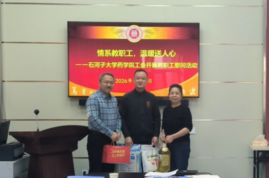 在2026年春节来临之际,为切实传递组织温暖,凝聚学院奋进力量,践行“笃学创新、精药济世”的院训精神,1月19日下午,药学院党委书记唐辉及工会委员一行,慰问了学院需重点关怀的教职工,代表学院党委和工会送上节日的问候、诚挚的祝福以及精心准备的慰问品,把温暖送到教职工的心坎上。