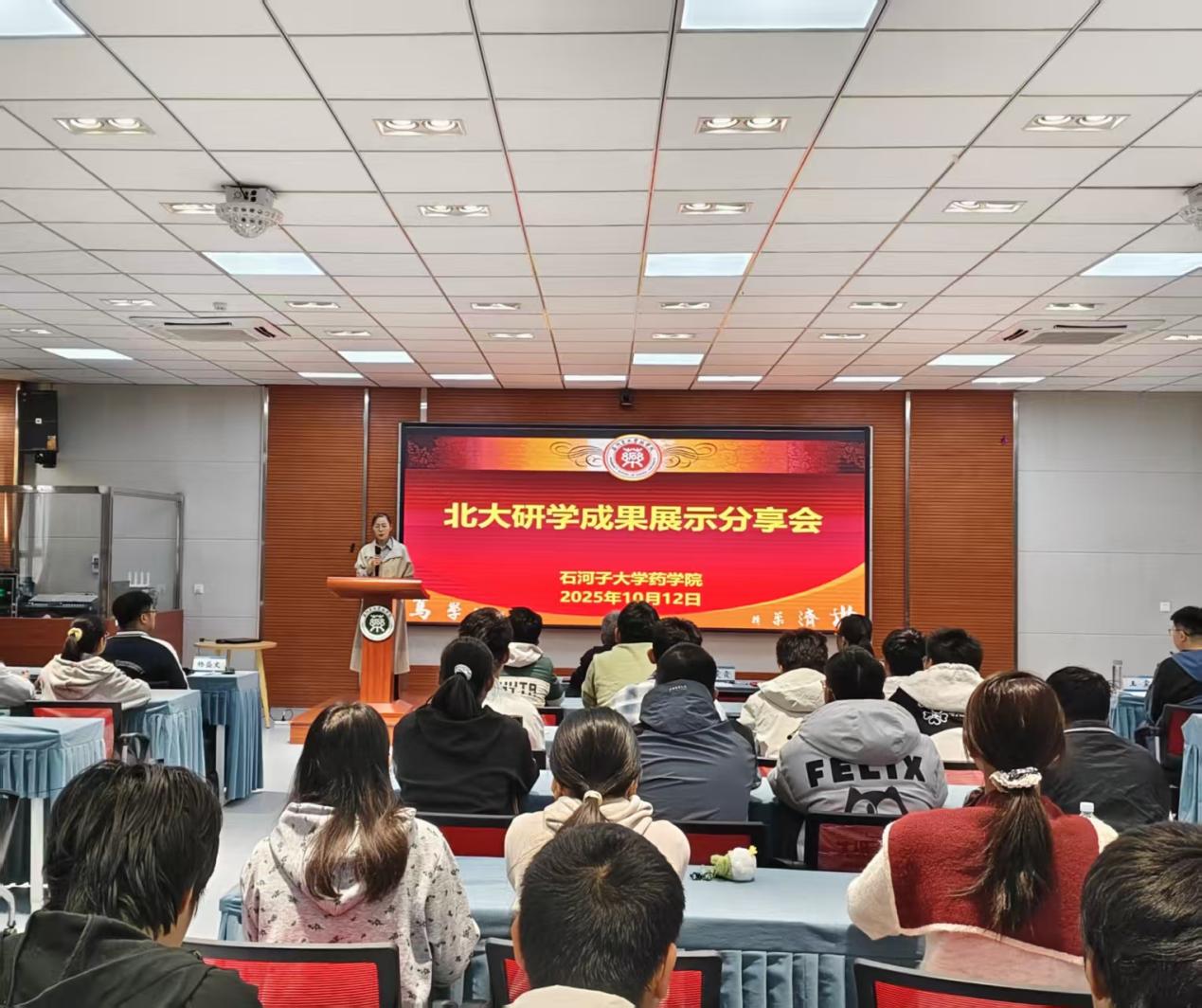 2025年10月12日上午,石河子大学药学院举办暑期赴北京大学研学成果展示汇报会在南区杏3楼四楼学术报告厅举行。北京大学药学院研究员(石河子大学药学院援疆副院长)刘振明、石河子大学药学院副院长刘雯霞、教办工作人员以及研学团队20名师生与各年级学生参与。