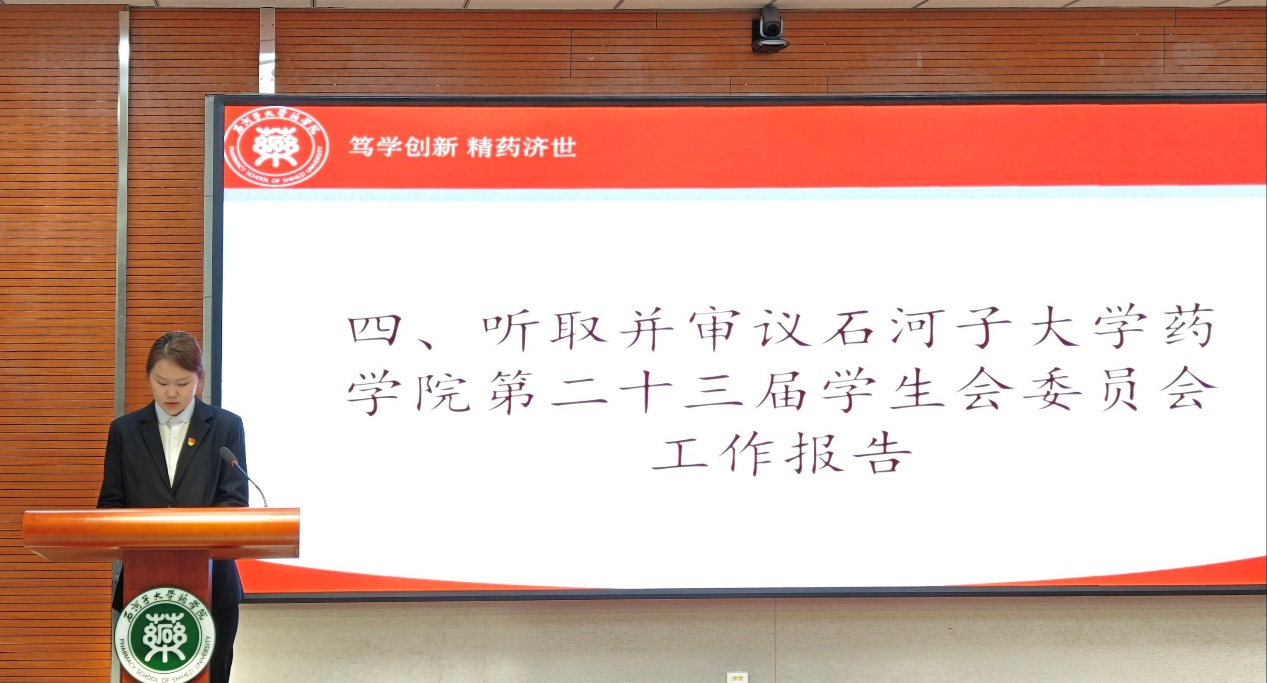 大会第五项代表听取并审议了药学院第二十四次学生代表大会提案工作报告以及《石河子大学药学院学生会章程(修正案)》