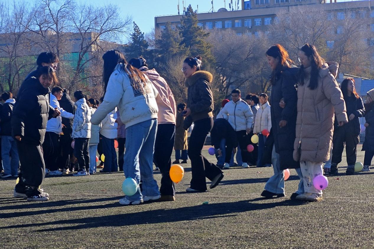 最后,作为活动压轴的踩气球项目,更是将氛围推向顶点——参与者们腿上系着彩色气球,脚步轻快如飞。清脆的爆裂声此起彼伏,场上追逐嬉闹的身影与阵阵欢呼喝彩声交织成趣。